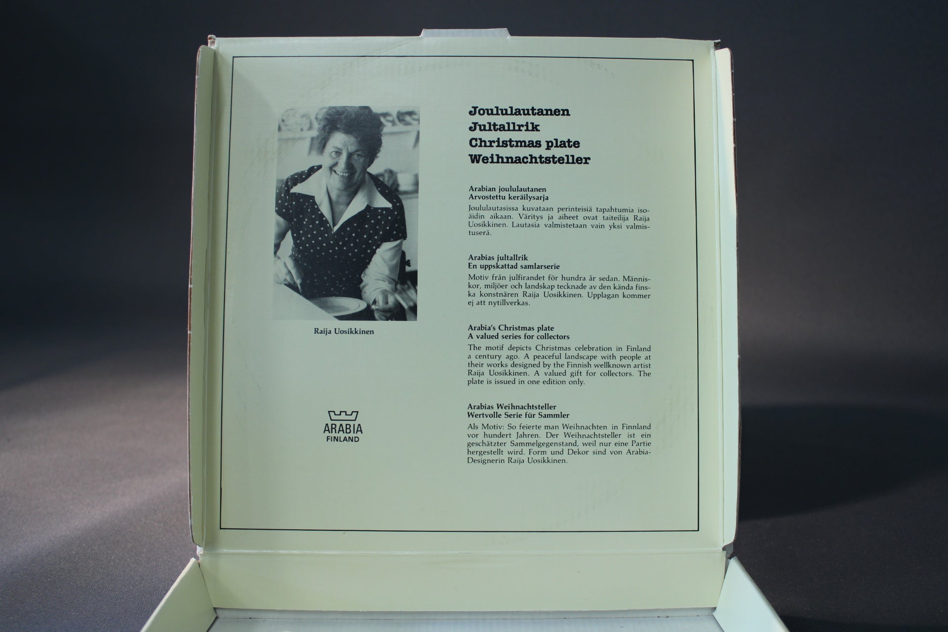 Arabia joululautanen 1982 – Raija Uosikkinen, alkuperäinen laatikko