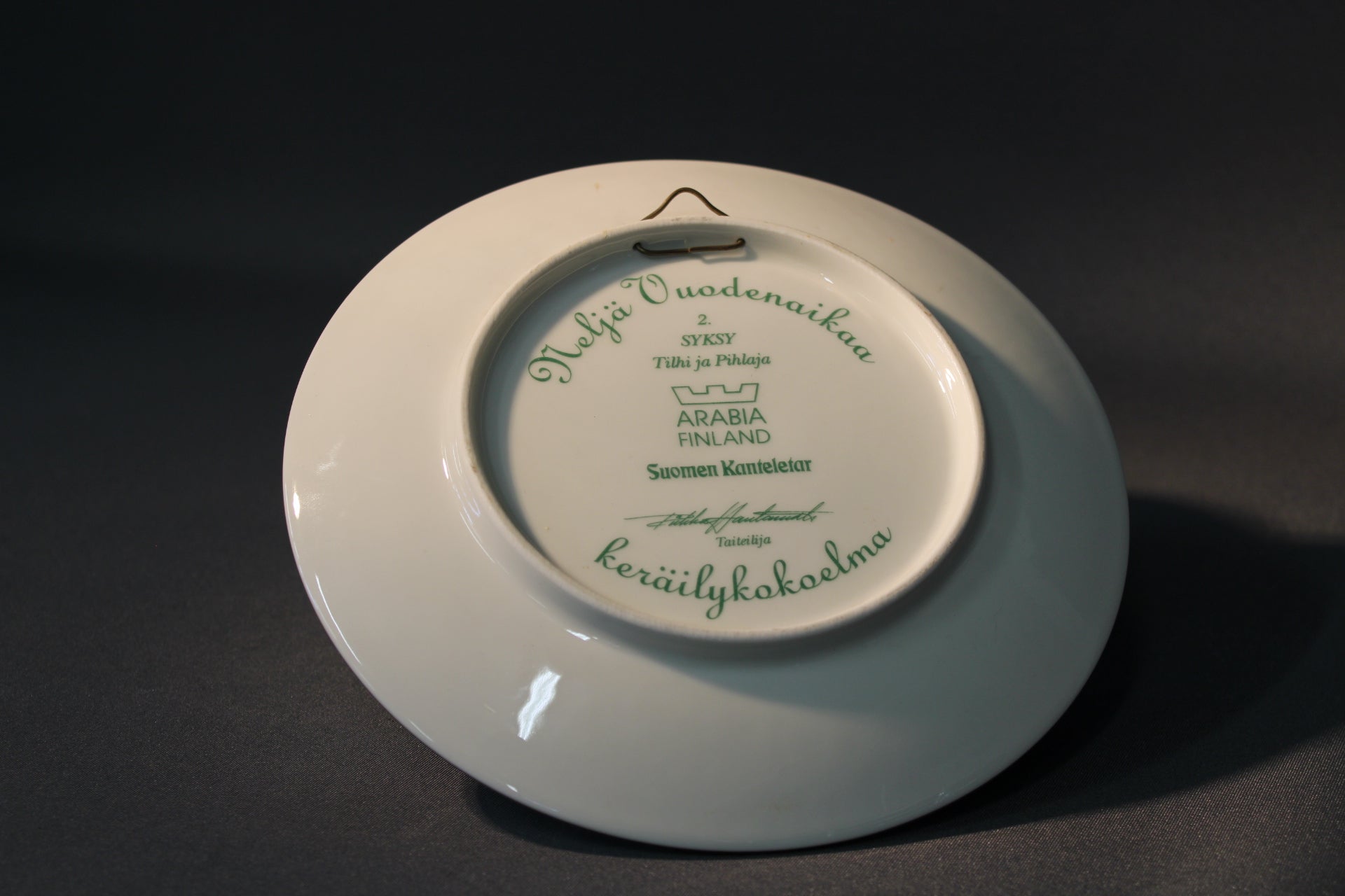 Lautanen on valmistettu kestävästä vitroposliinista, ja sen reunaa koristaa tyylikäs kultaus. Takapuolella on selkeä Arabia Finland -leima sekä ripustusvalmius, joten lautanen toimii loistavasti sekä keräilyesineenä että sisustuksen yksityiskohtana.