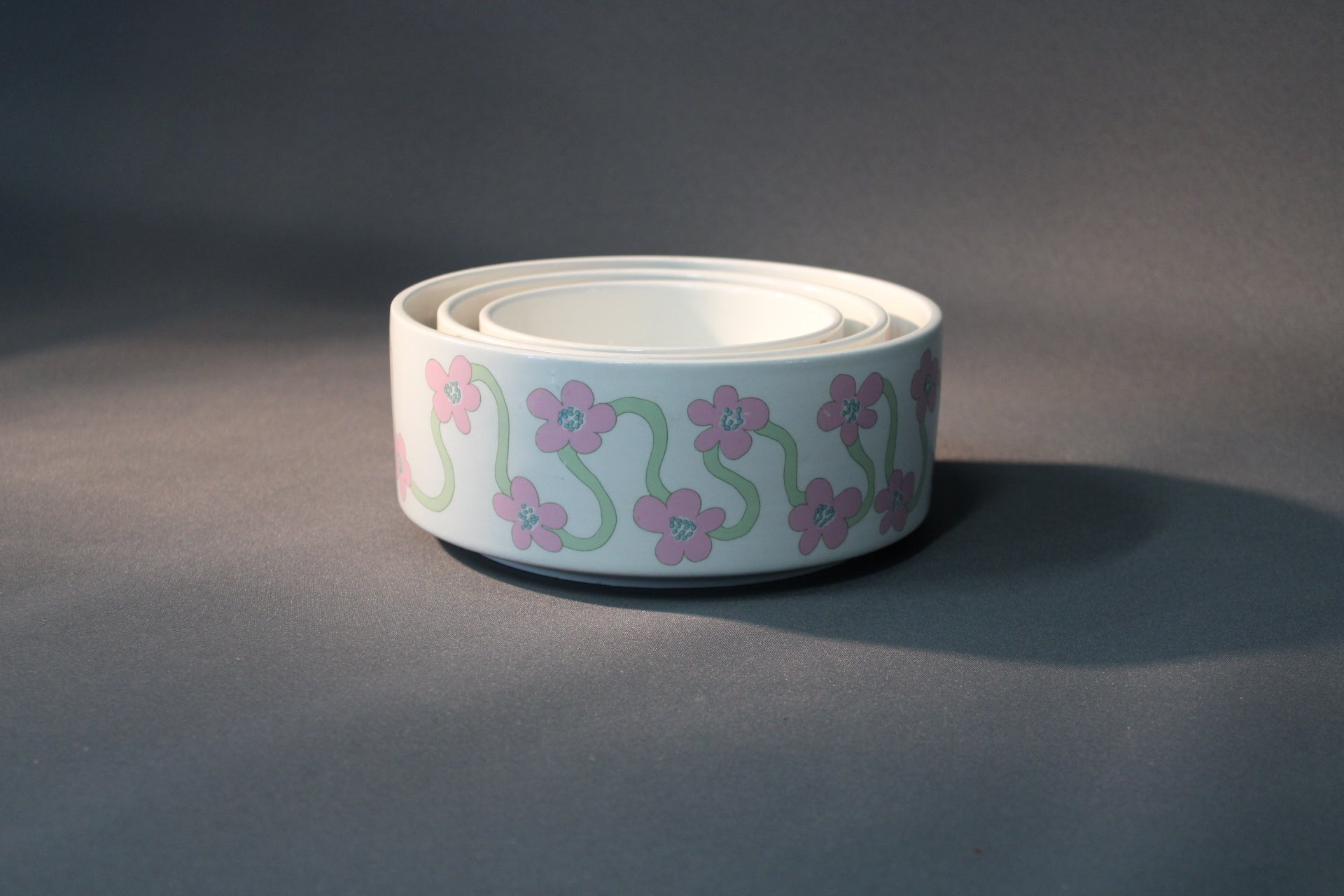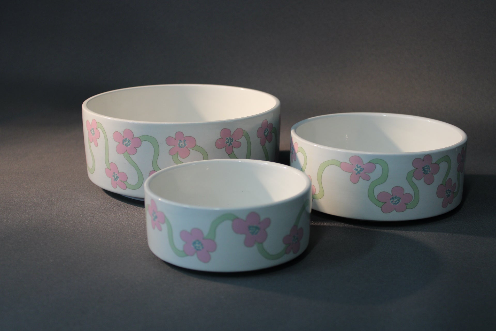 Arabian kaunis Villiruusu-kulhosarja on Laila Hakalan suunnittelema ja hurmaa hempeällä kukkakuosillaan. Valkoiselle pohjalle painetut vaaleanpunaiset kukat ja vihreät köynnökset tuovat raikkaan ja nostalgisen tunnelman kattaukseen. Sarja sisältää kolme erikokoista kulhoa, jotka sopivat erinomaisesti niin tarjoiluun, jälkiruokiin kuin arjen kattaukseen. Kulhot pinoutuvat kätevästi sisäkkäin säilytystä varten.