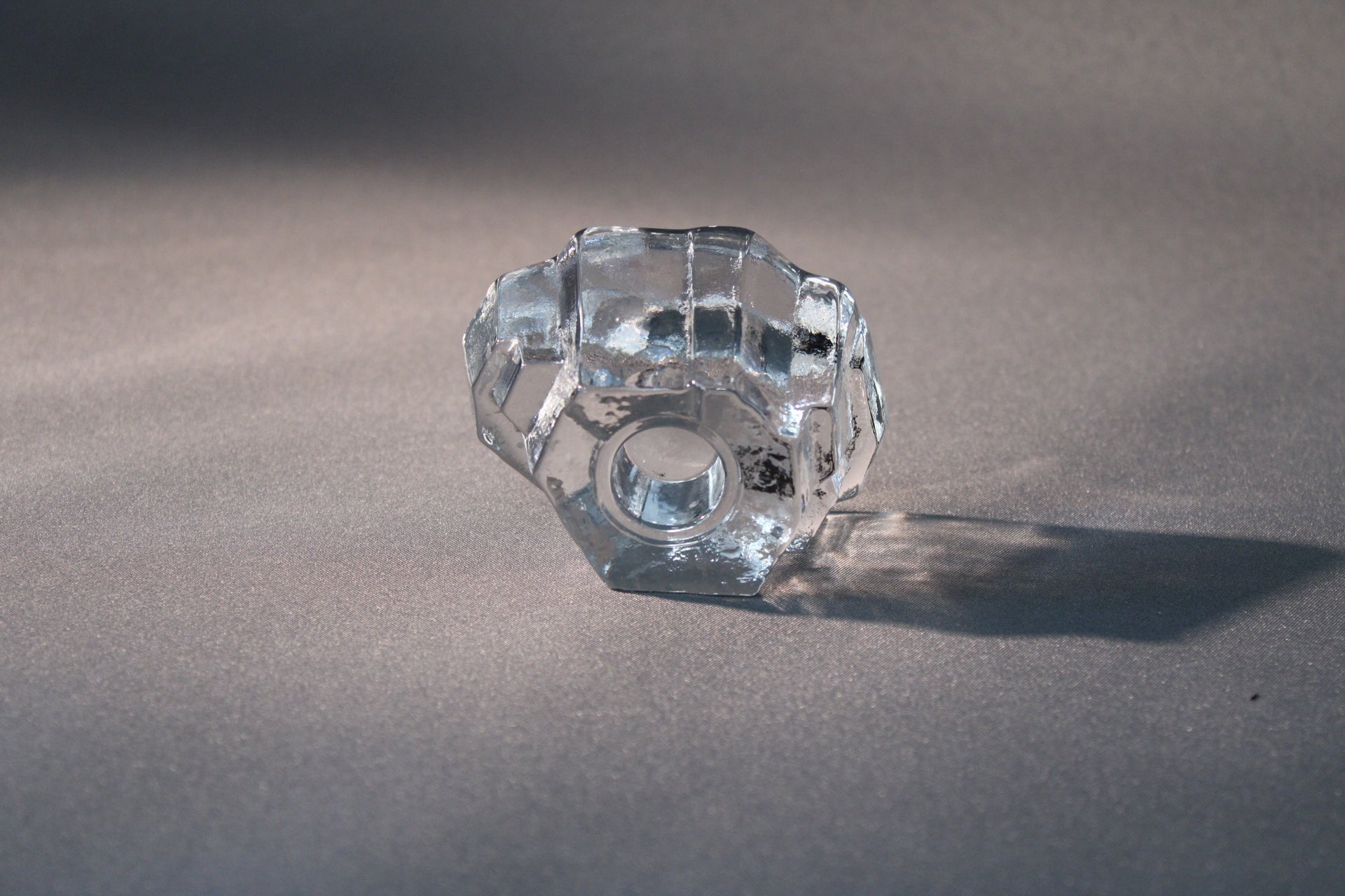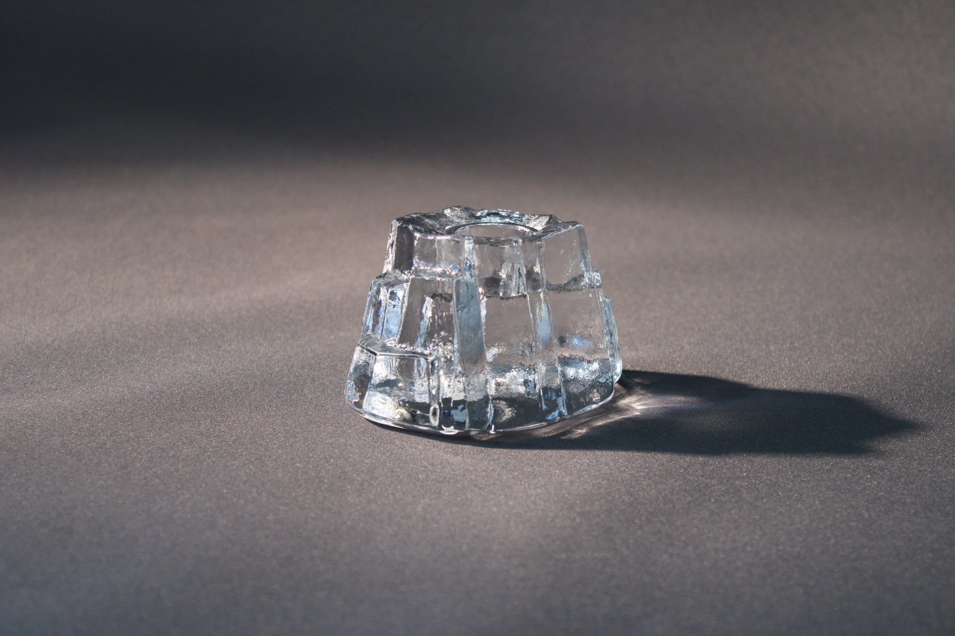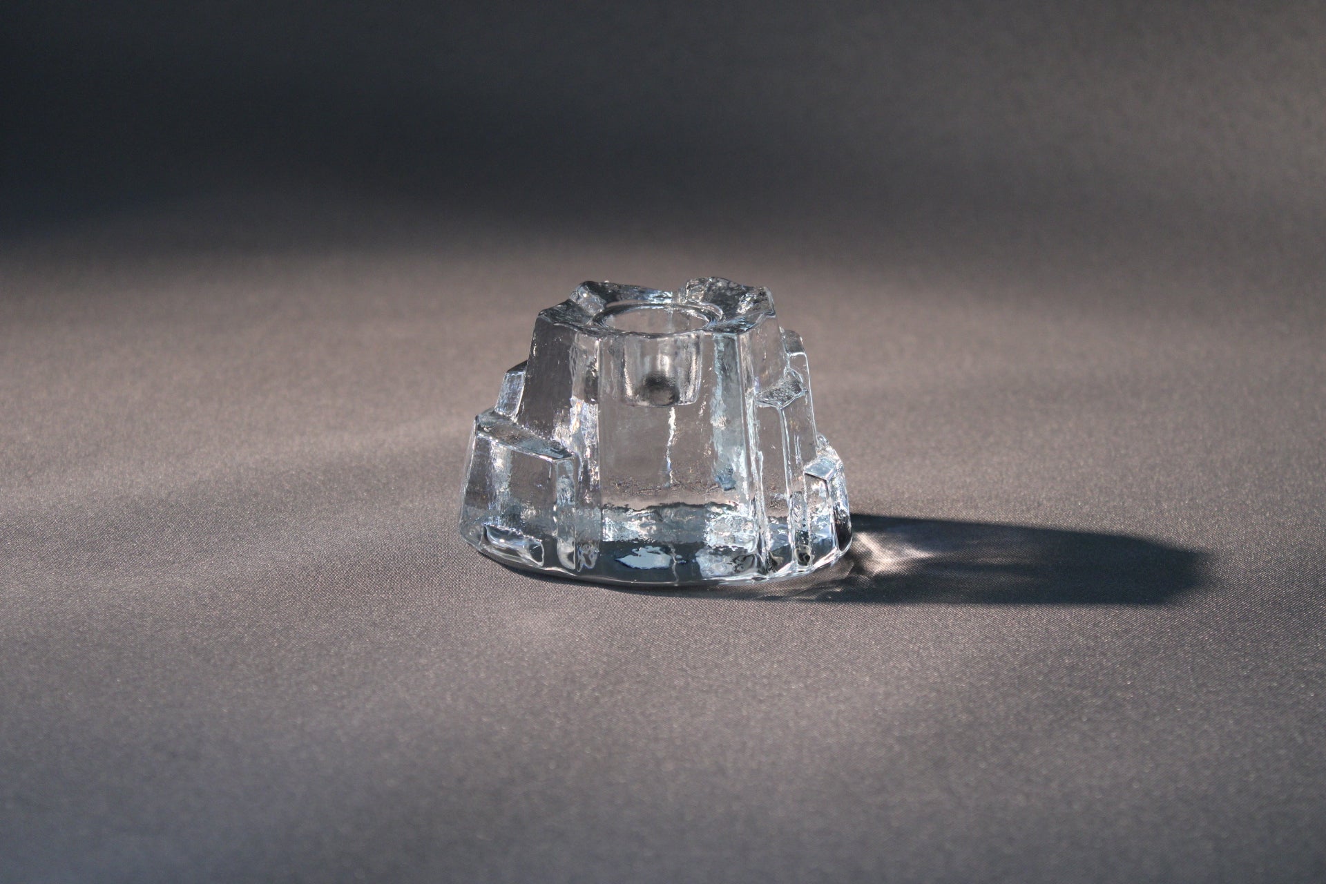 Muurlan Jäävuori-kynttilänjalka on veistoksellinen ja näyttävä lasiesine, joka tuo luonnon inspiroimaa muotoilua osaksi sisustusta. Simo Tavastin suunnittelema kirkas kynttilänjalka muistuttaa jäävuoren pintaa – sen särmät taittavat valoa kauniisti ja luovat elävän heijastuksen ympärilleen.