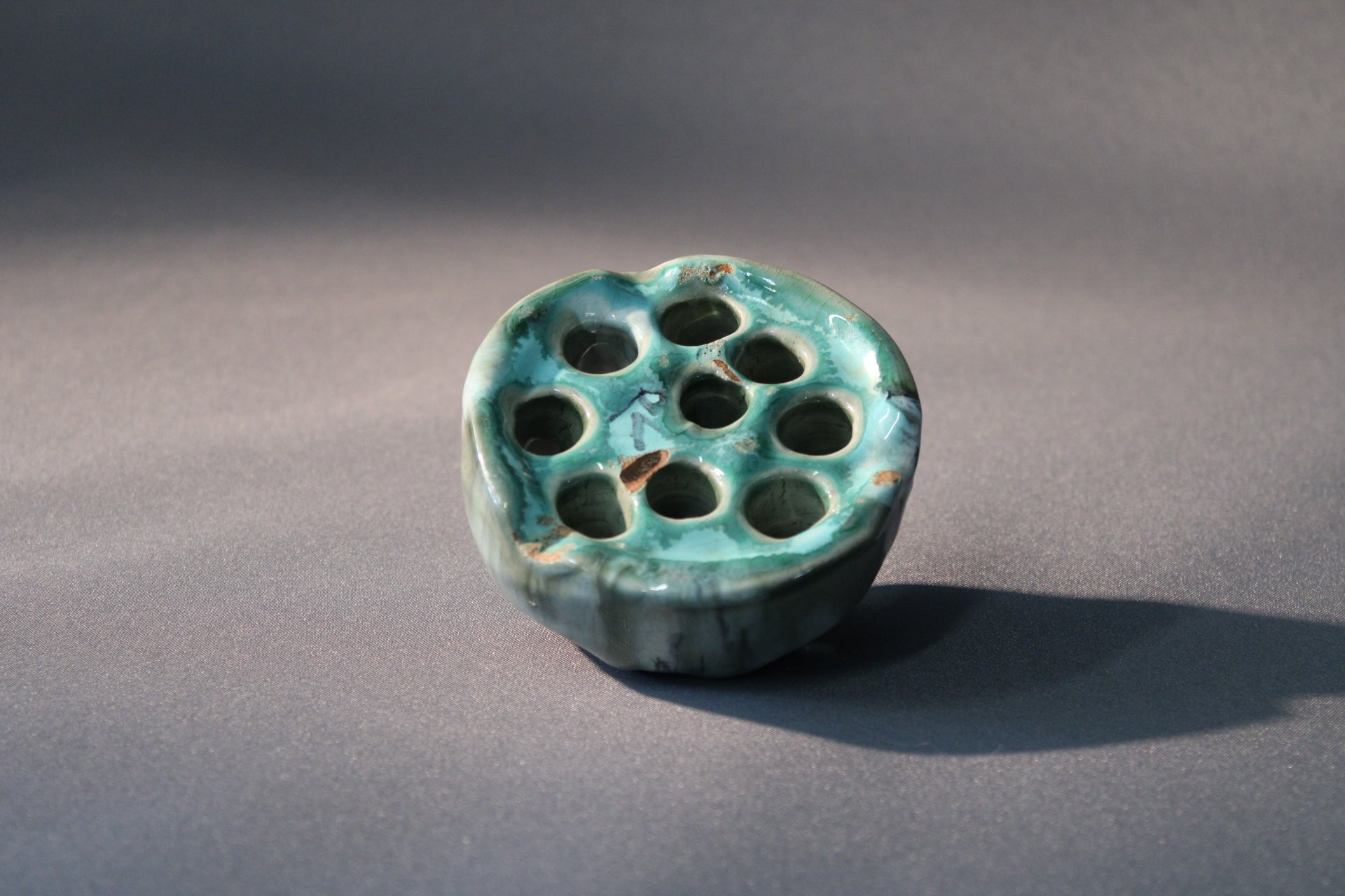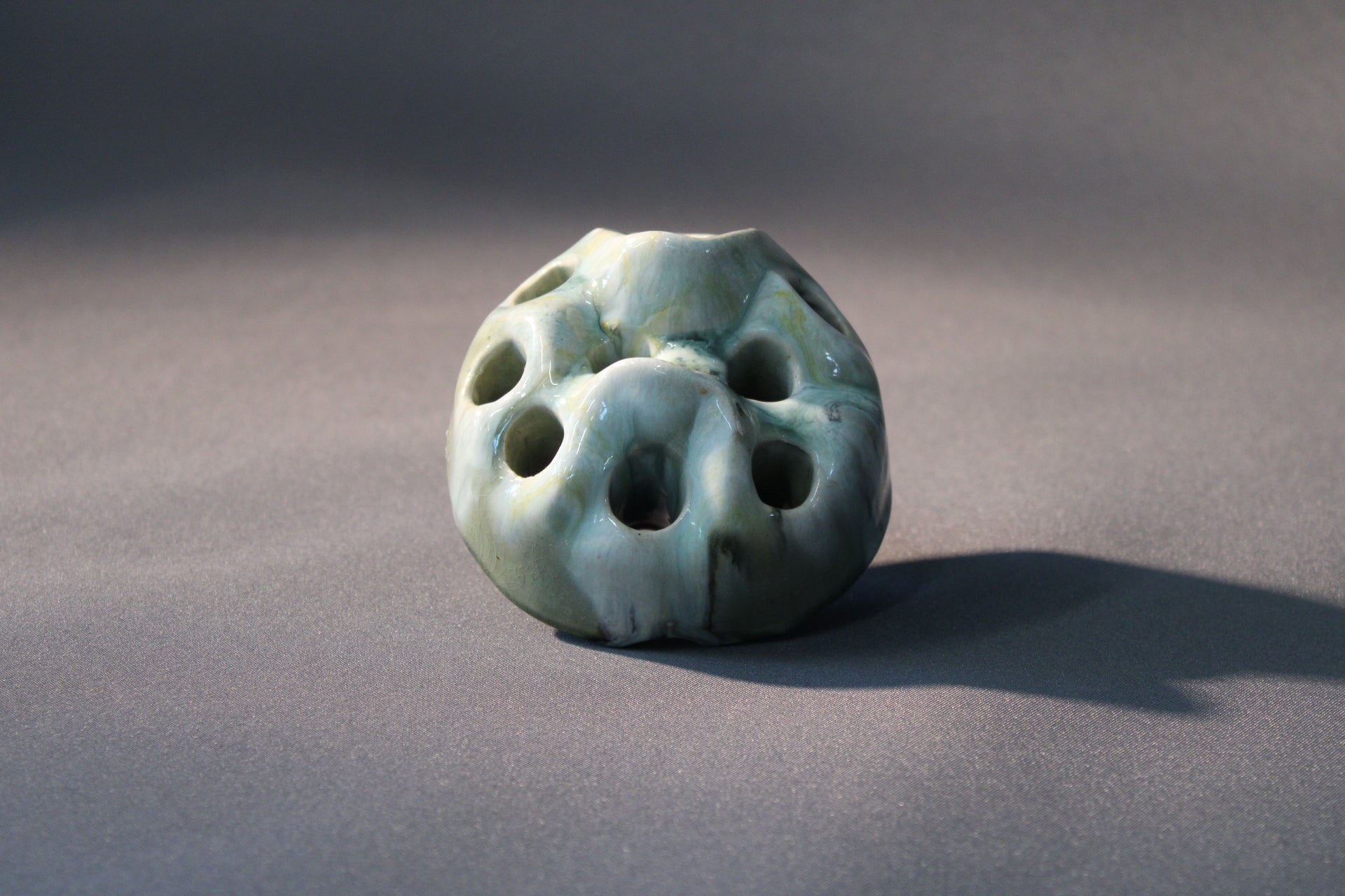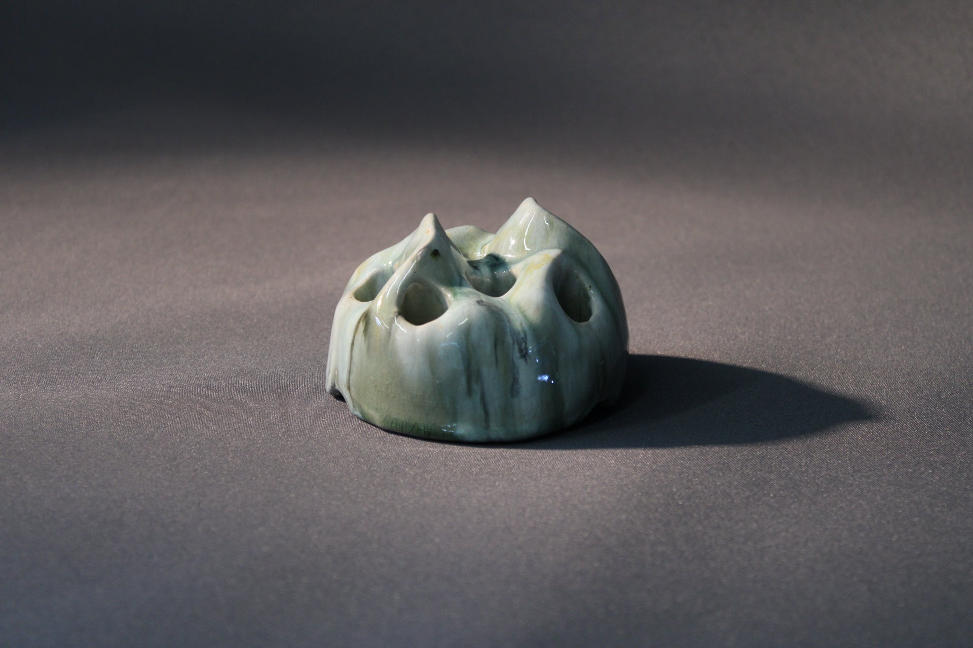 Tämä Kupittaan Saven valmistama kukkasiili on ainutlaatuinen yhdistelmä funktionaalisuutta ja veistoksellista muotoilua. Kukkasiilin vuoristomainen, virtaava pinta ja vihreän eri sävyt tekevät siitä kiinnostavan katseenvangitsijan niin pöydällä, hyllyllä kuin asetelmien keskellä.