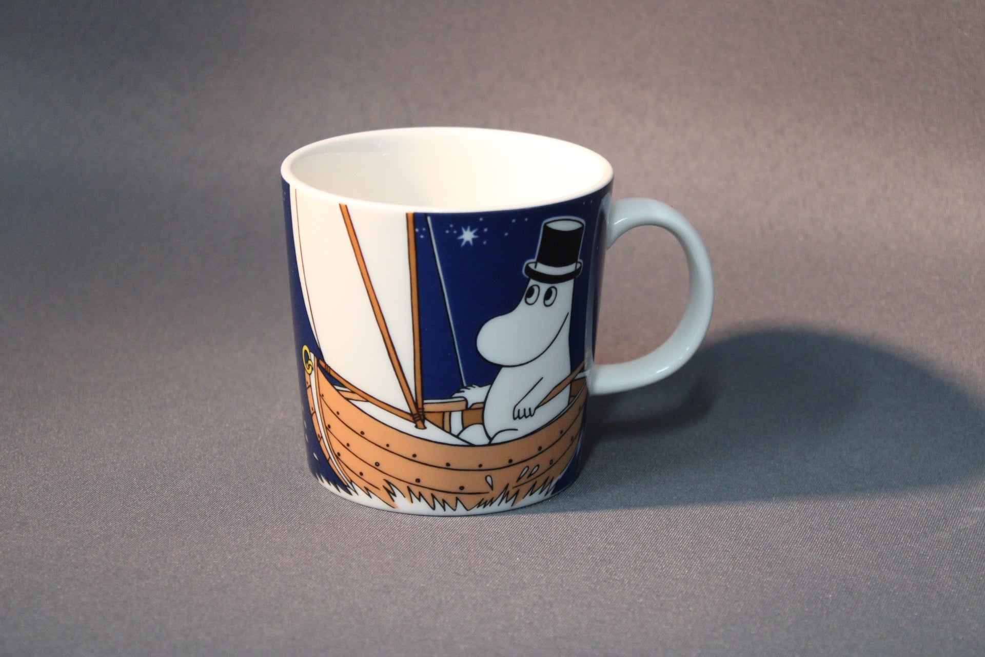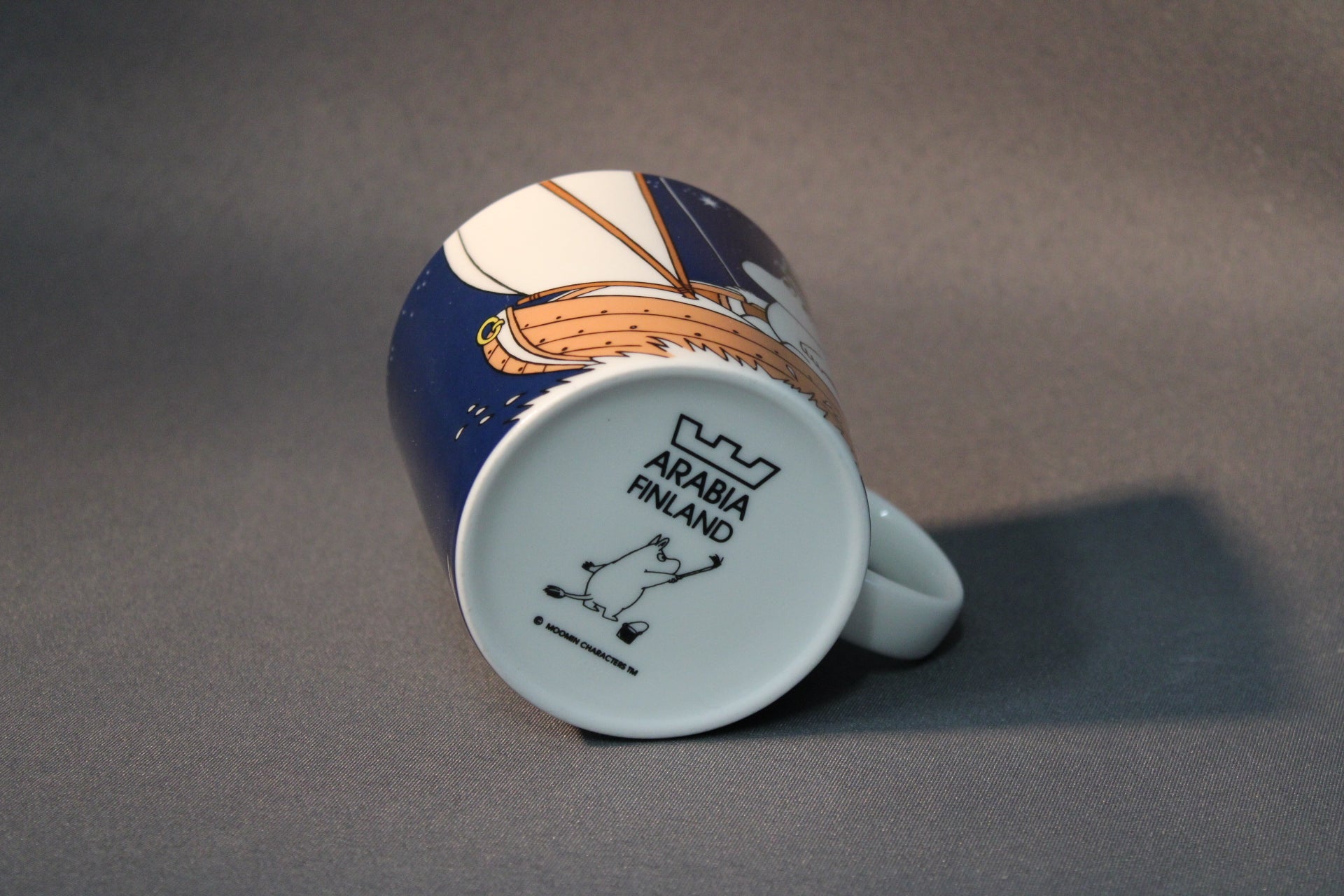 Arabian valmistama Muumimuki Muumipappa purjehtii, syvä sininen oli tuotannossa vuosina 2014–2022. Mukissa Muumipappa seilaa veneellään meren aalloilla, mikä korostaa hänen seikkailunhaluista luonnettaan ja rakkauttaan vapauteen. Syvänsininen pohjaväri luo mukiin arvokkaan ja rauhallisen tunnelman, joka tekee siitä suositun sekä käyttöön että keräilyyn. Valmistuksen päätyttyä muki on noussut keräilijöiden suosioon ja sen arvo kasvaa hiljalleen.