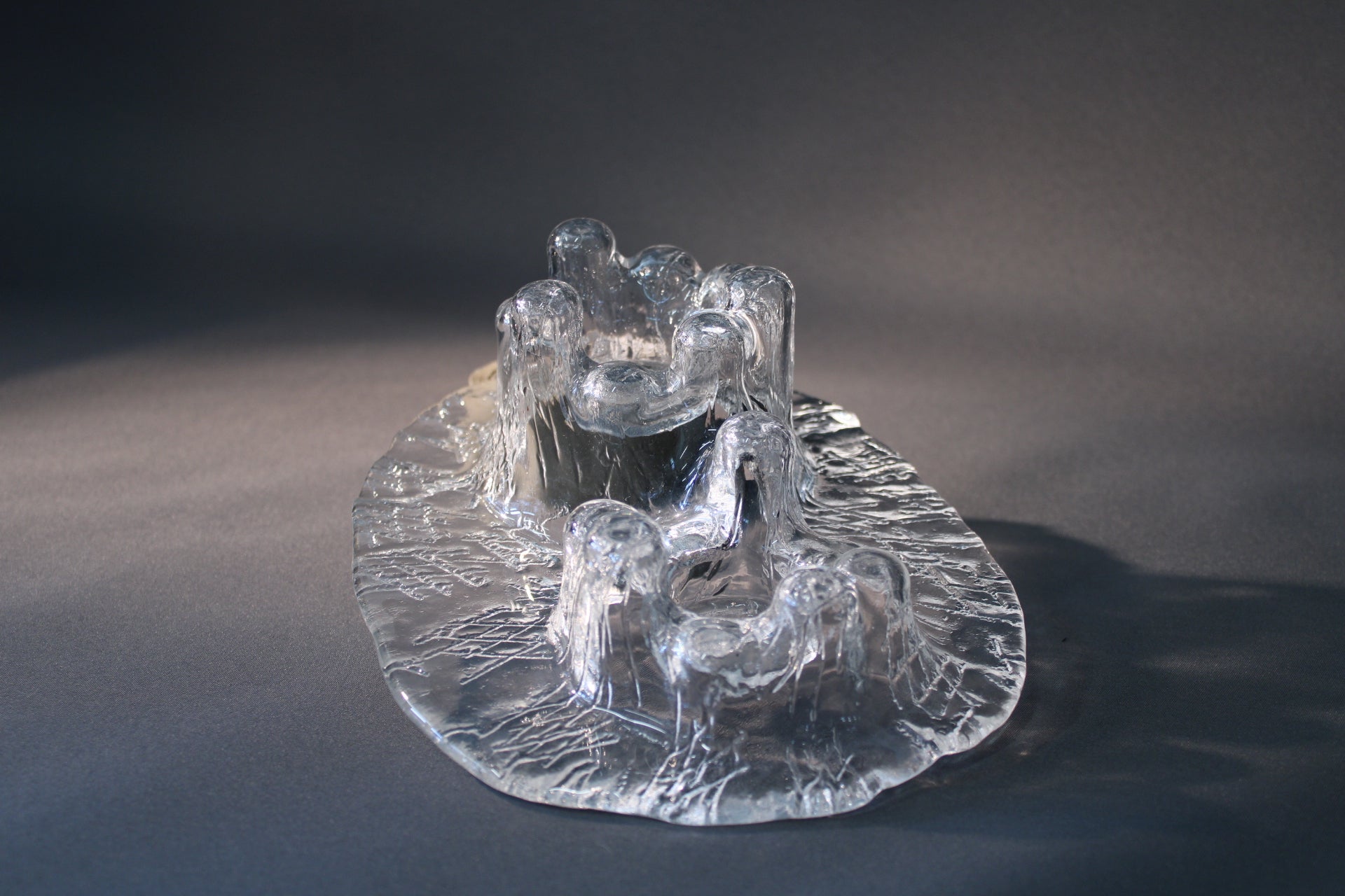 Ajattoman tyylikäs tuikkukynttelikkö Muurlan Castello-sarjasta. Tämä kirkas lasinen kynttelikkö on valmistettu Suomessa 1980–90-luvuilla, ja se edustaa laadukasta kotimaista muotoilua. Paksu lasipohja tekee kyntteliköstä tukevan ja turvallisen käytössä, ja sen selkeä, pelkistetty muoto sopii monenlaiseen sisustustyyliin.