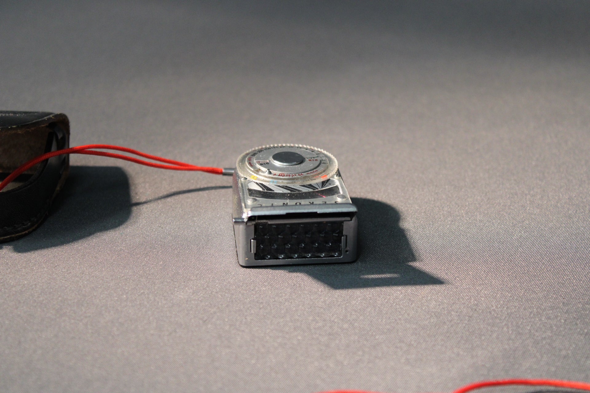 Tuote on säilynyt alkuperäisen nahkakotelon kanssa, jossa näkyy ajan patinaa mutta joka suojaa mittaria edelleen käytössä tai kokoelmassa. Pieni ja kevyt mittari kulkee helposti mukana ja on erinomainen lisä niin filmikuvaajalle kuin valokuvauksen harrastajalle.